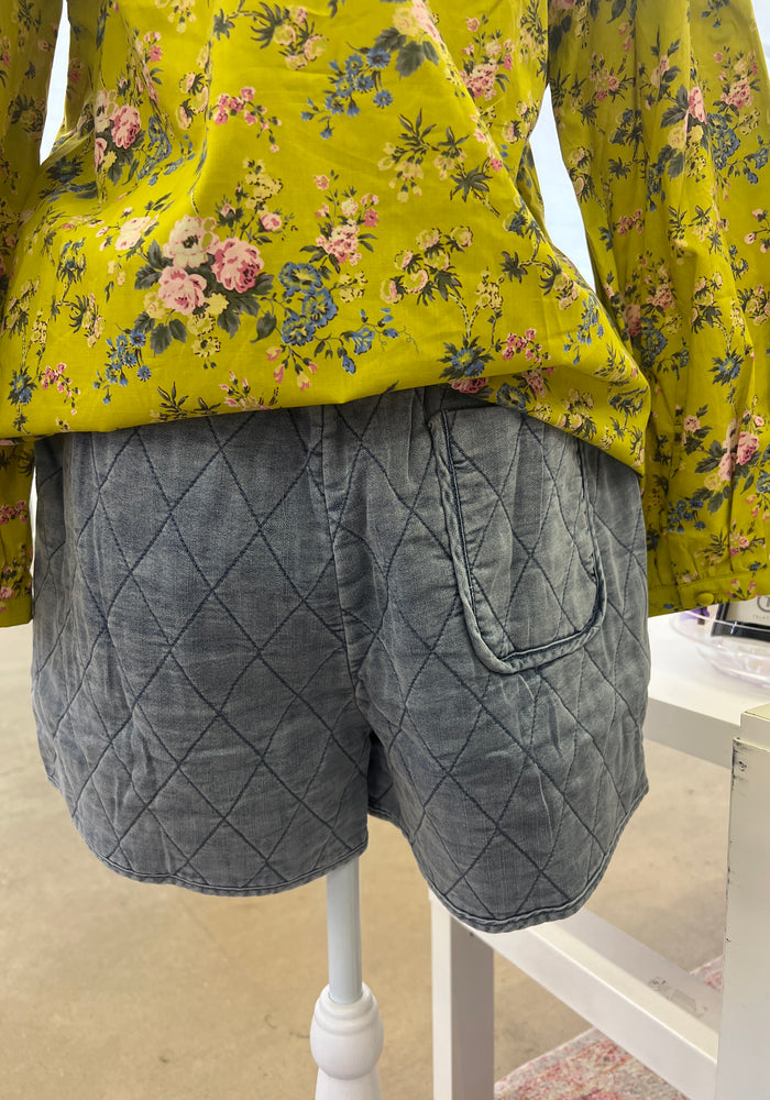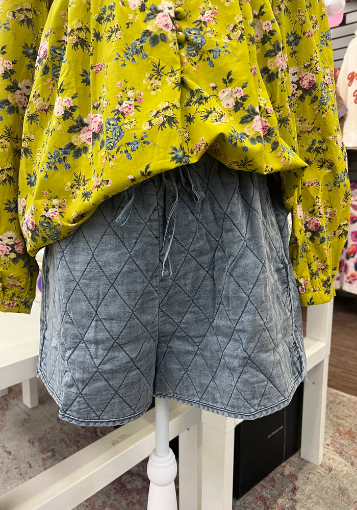 Quilted Pattern Denim Shorts