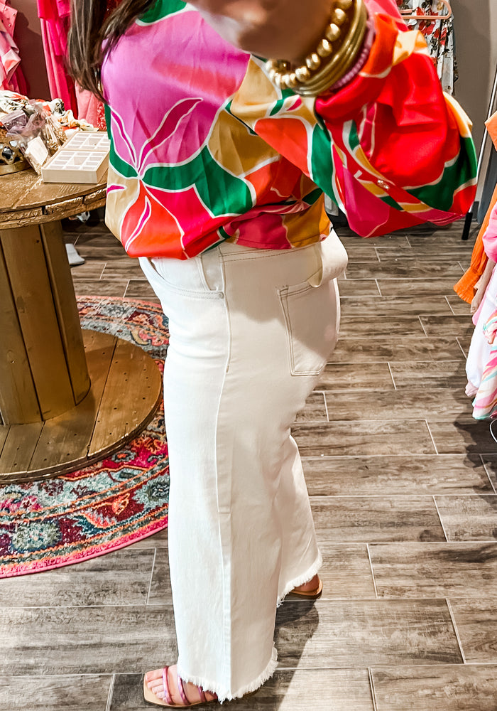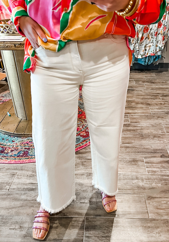 Cream Wide Leg Risen Jeans