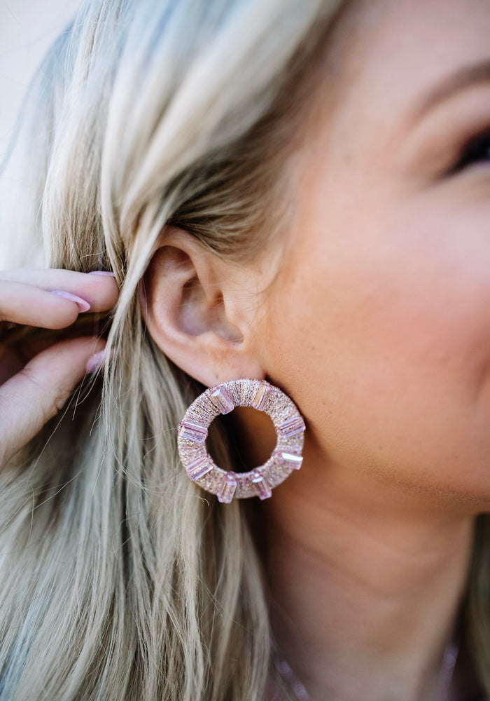 Crystal pink panache hoops