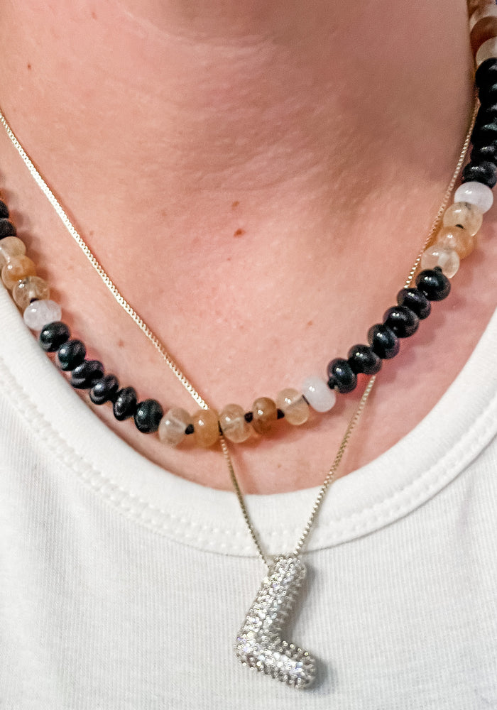 Black White Gemstone Necklace