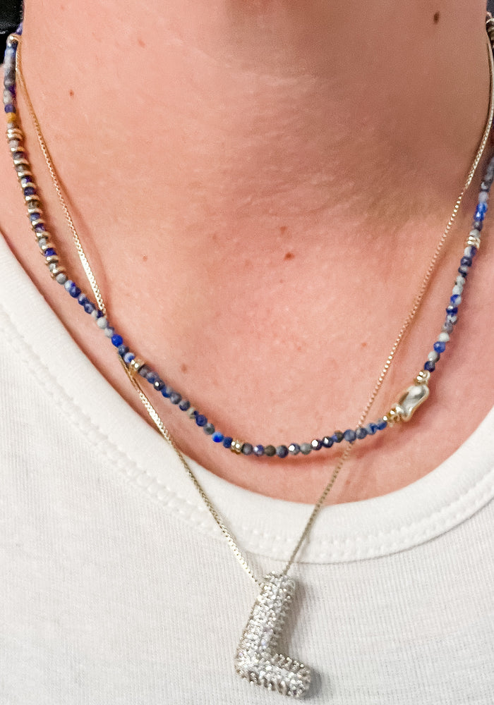 Navy Gold Gemstone Necklace