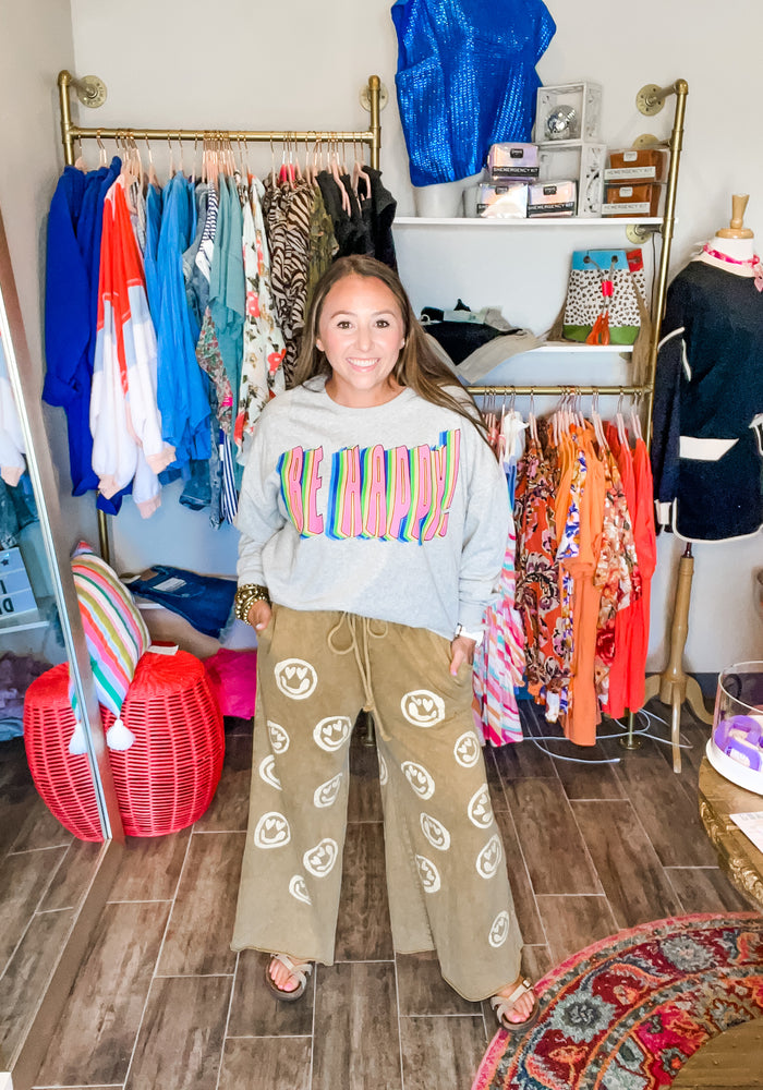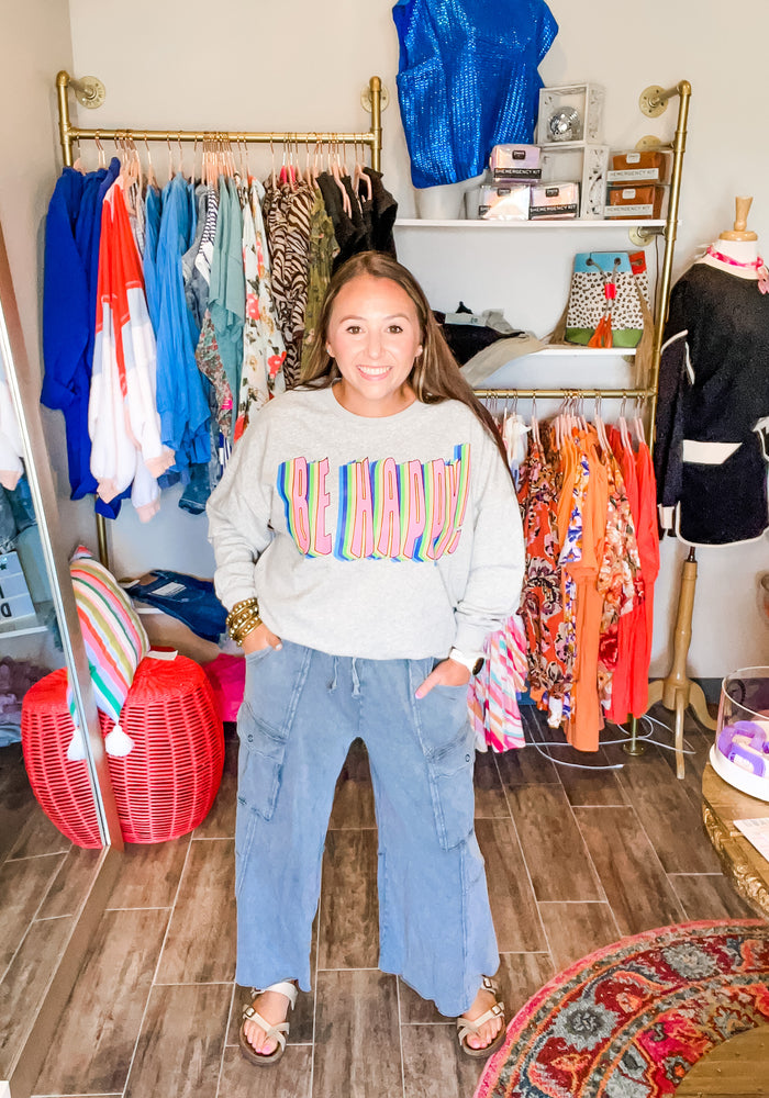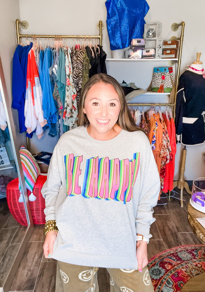 Be Happy Heather Grey Crewneck